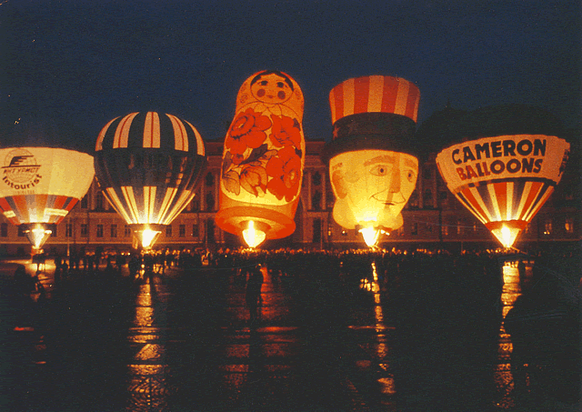 In 1990 we took our new balloon, Matrioshka (a Russian doll) to what was still called Leningrad (now St. Petersburg again) and we flew her from Catherine the Great’s palace and over the city itself. We even did a balloon glow in front of the Winter Palace. That was quite a time.