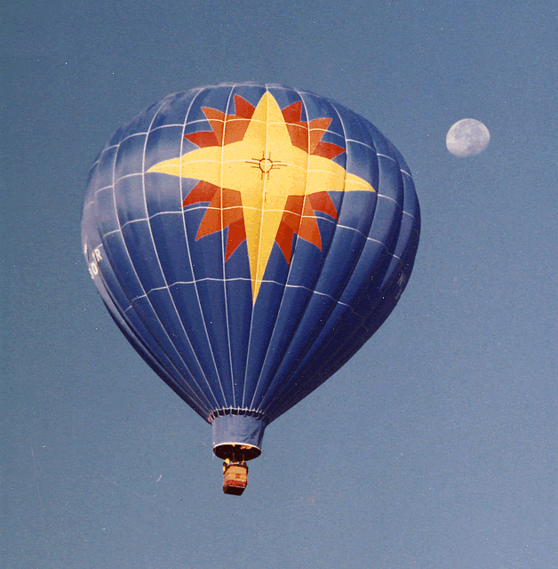 Back in 1979, I ordered my first balloon, the Rising Star (seen to the left) from Raven Balloons (later Aerostar Balloons). Before it arrived, I met Jacques Soukup. That October, at the 1979 Albuquerque International Balloon Fiesta, I witnessed a horrific ballooning accident, which put me off flying for a few years. This gave Jacques the chance to become a pilot right away, and he took it.