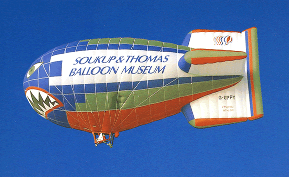 We had already founded a small balloon museum in Tyndall, SD, and so this airship was designed to help advertise it. Her British registration mark was G-UPPY, so that’s what we called her. I competed in the European Championships in her, and flew her in Switzerland, the UK and the USA. I even tried to set a distance record in her from South Dakota one winter, but the burner went out in a snow storm over Nebraska and I fell out of the sky. I managed to get the airship into a hole in the woods and neither she nor I suffered a scratch. I flew her again later that day.